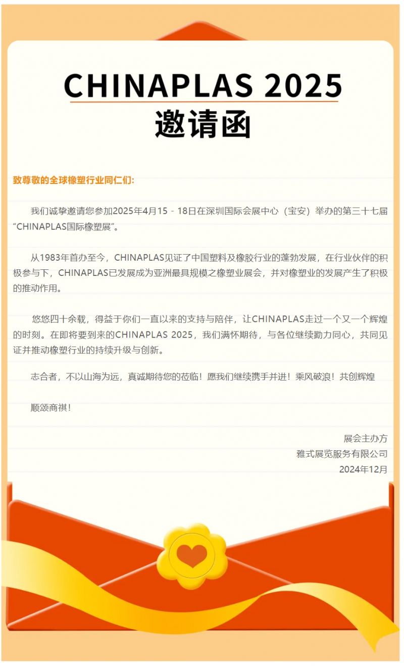 叮咚!您有一封2025國際橡塑展的參觀邀請函,請查收!