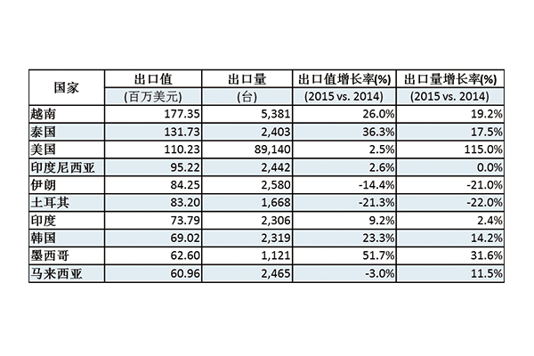 此外,經過多年的發展,中國塑料機械制造商亦正大肆擴張,發展海外業務。進入新世紀以來,中國一直是世界上最大的塑料機械制造國。中國的一些頂級品牌正在積極籌備建立海外工廠和經營機構,旨在推動塑料機械出口業務。中國制造的機器尤為亞洲市場所青睞。2015年,中國塑料機械的首十大出口市場包括了越南、泰國、印度尼西亞、印度、韓國和馬來西亞這些亞洲國家。