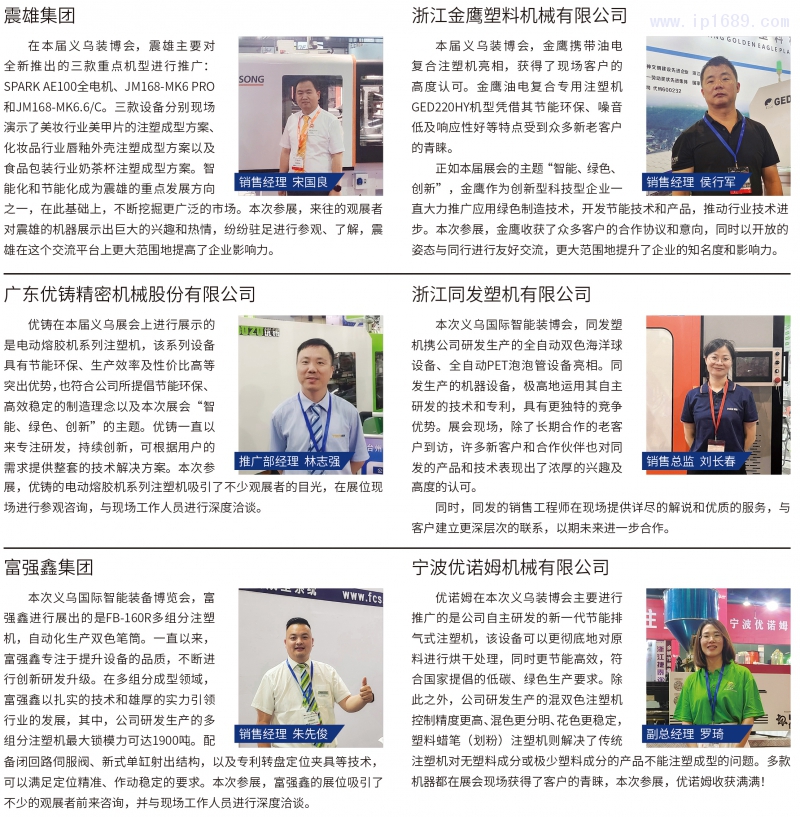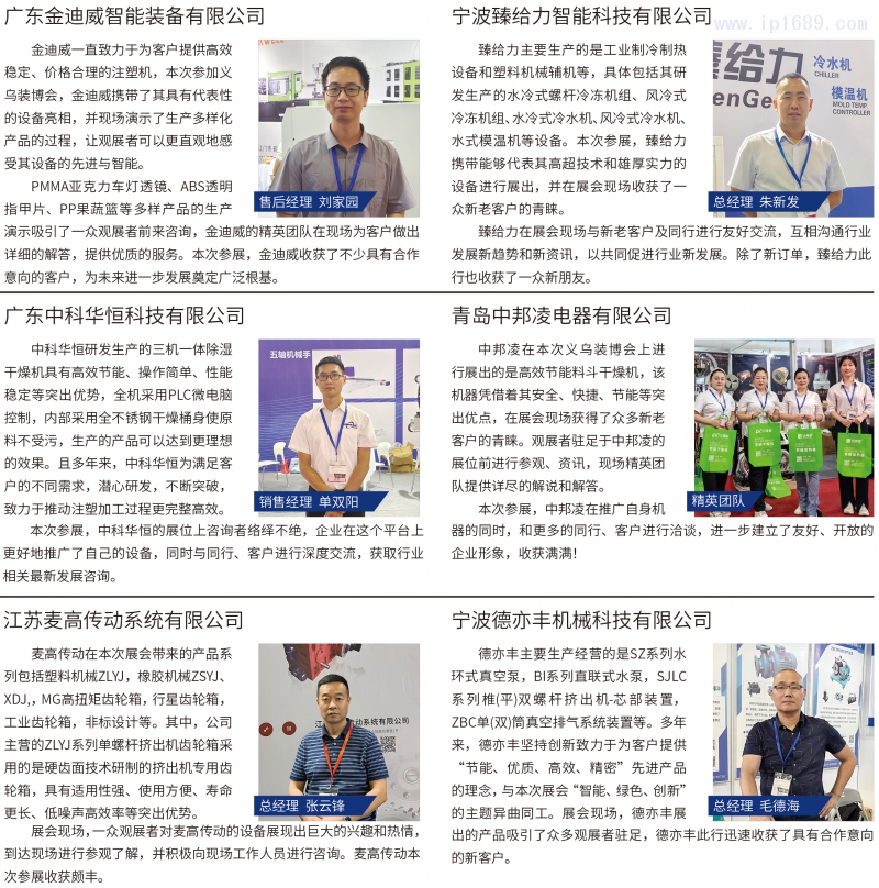包括全球塑機經典企業香港震雄、臺灣富強鑫以及大陸地區先進企業等百余家塑料產業企業集聚義烏,共同在此平臺上交流行業未來發展的最新趨勢。
