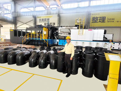 博創超大型二板式4000噸注塑機實現特大型PE管件一次成型并成功出口澳大利亞