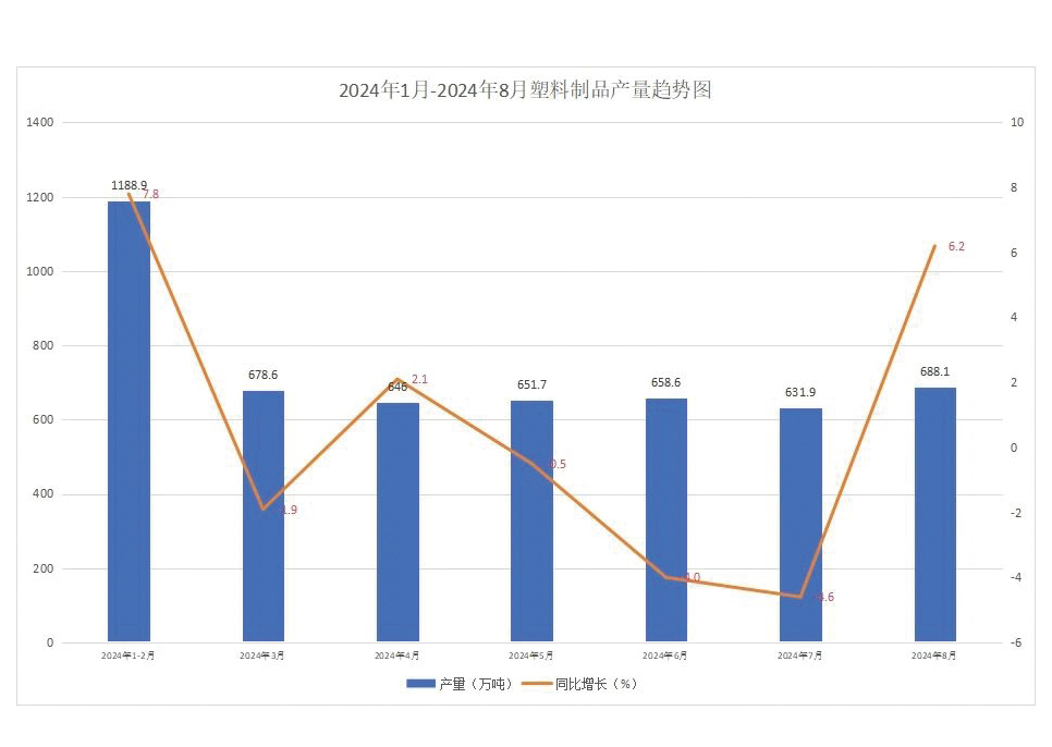 8月塑料制品產量688.1萬噸 同比增長6.2%