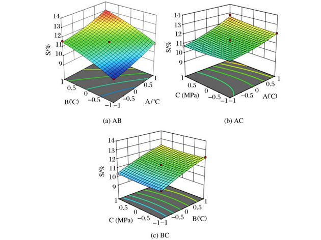 以某智能巡檢機器人的監視裝置基座為實例,以模具表面溫度、熔體溫度和充填壓力為分析變量,塑件的體積收縮率為響應指標,設計了響應面試驗,構建了響應面分析模型。