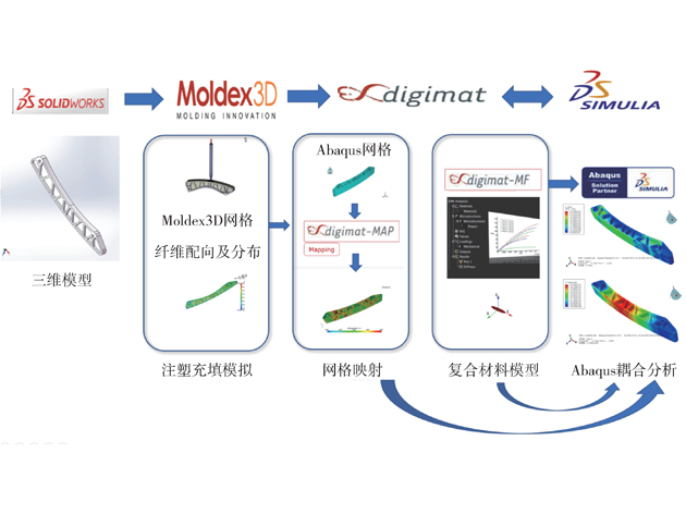 為提高復合材料注塑件的仿真準確性,基于多尺度聯合仿真方法,以汽車發動機正時鏈條導軌為例,根據導軌纖維配向以及結構應力分布情況,設計了導軌減量化結構