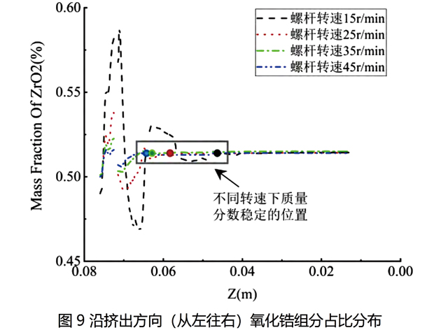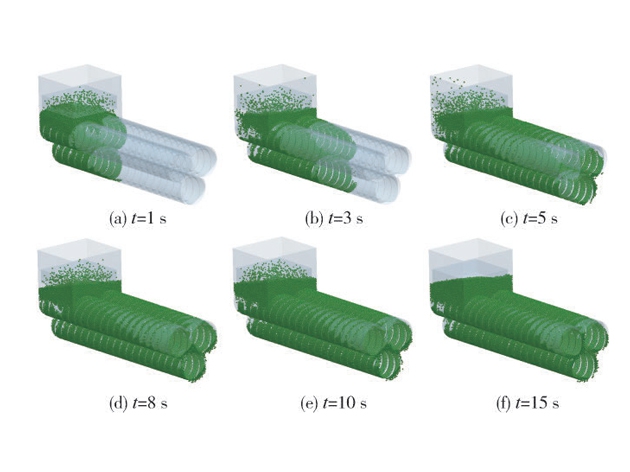 基于離散元法分別對同向旋轉的三螺桿以及雙螺桿擠出機固體輸送行為進行仿真模擬,對三螺桿擠出機顆粒 速度分布以及受力分布進行分析,將三螺桿和雙螺桿擠出機顆粒填充效率、輸送質量以及質量流率進行對比分析。
