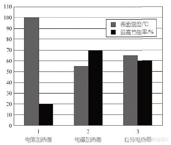 從圖示可以看到電磁加熱圈的表面溫度以及相對普通加熱圈節能率都有優勢,但是為什么現在是紅外節能加熱圈占據了節能加熱圈市場的主導地位呢?接下來詳細分析。