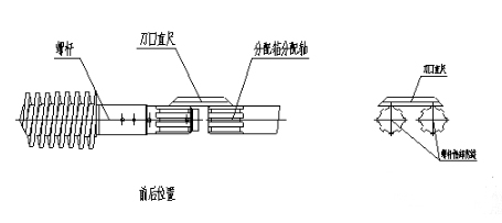7) 用銅撬棒在下料口將右螺桿頂住在底部(保持螺桿頂軸端面與分配軸端面接觸貼合),固定不動。