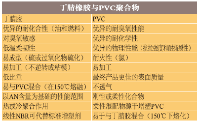 表1、NBR和PVC性能特征