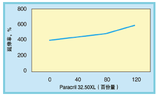 硬度、伸長率與拉伸性能也隨著120份量的最高NBR用量而變化。這為優化NBR改性PVC性能提供一個非常廣的化合物配方設計窗口。