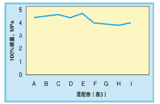 圖3表明混配物1~4的硬度值。圖4表明混配物1~4的延伸率,圖5表明混配物1~4的伸長值。