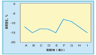 圖2表明混合物1~4系列在100℃的IRM903油中浸泡70小時老化后的體積變化。