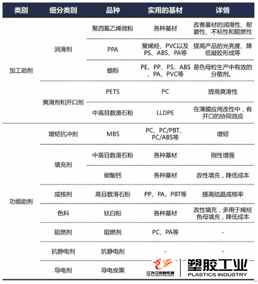 改性劑或者也叫助劑可以分為加工助劑和功能助劑。