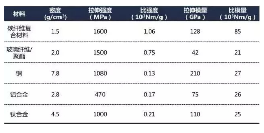 碳纖維復合材料與其他材料的物理性能對比