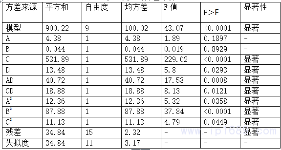 表2模型的方差分析