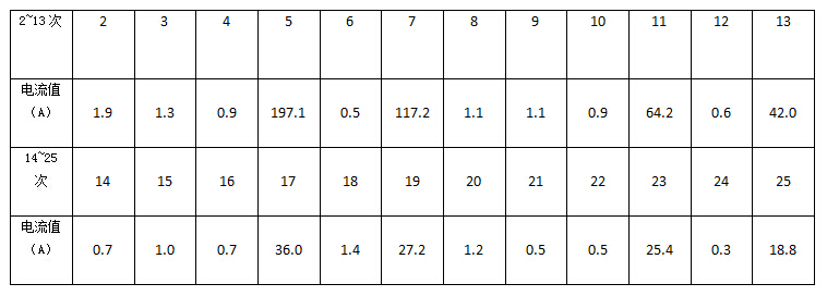 表1諧波電流值(2~25次)