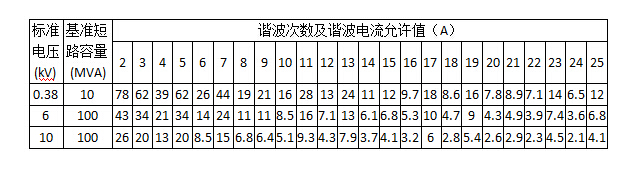 表3 注入公共連接點的諧波電流允許值