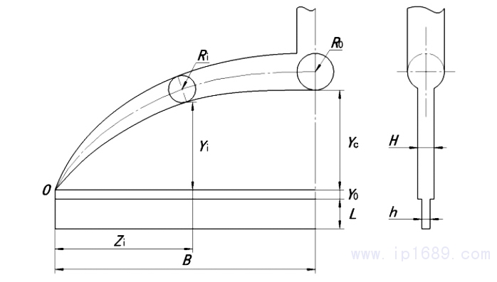 式中,Zi是任一點i在以扇形曲線左端為原點O的水平軸線上的距離值(見圖1),人為設定。