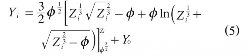 經置換法積分后可得到曲線上任意點i的高度Yi值:式5、式6