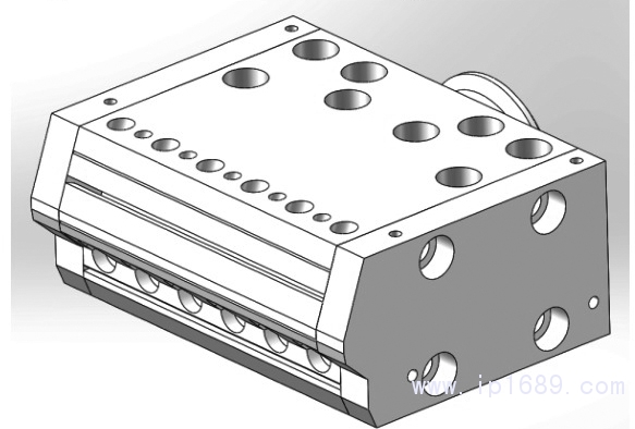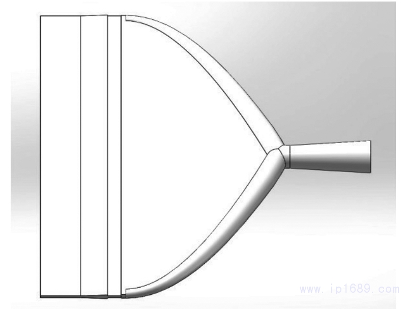 根據設計、計算與仿真獲得的結果建立流延模具流道的平面示意圖、流延模具流道的三維模型和流延模具的三維模型,如圖7、圖8、圖9所示。