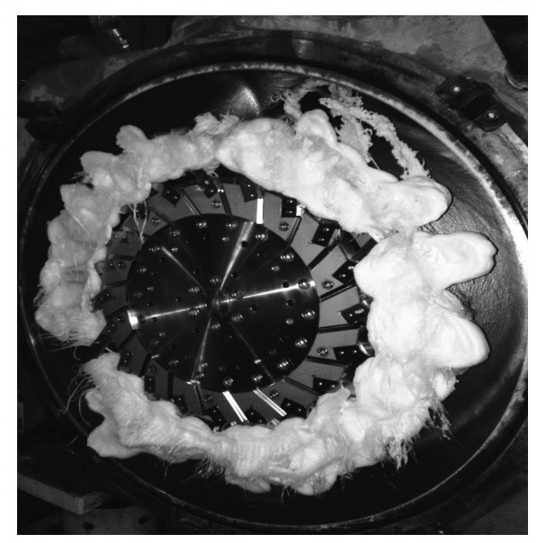 PP粉料及添加劑經過擠壓機筒體中雙螺桿的輸送混煉后,以熔融態通過模板,然后由切刀在循環水中造粒。切刀以一定轉速進行水下切粒,由進刀風壓及退刀風壓調節切刀與模板的接觸緊密程度,以生產外觀合格的粒料。然而,在長期連續生產中,會出現不同形式的切刀損傷,包括切刀磨損、切刀鈍化及變形、切刀斷裂等。其中,正常生產時,切刀磨損及鈍化是最常見的現象;生產波動時,切刀易發生纏刀現象(見圖1),清理包覆于切刀的樹脂易使刀刃鈍化及變形。為了延長切刀使用壽命,應對切刀磨損及纏刀現象予以重點關注。