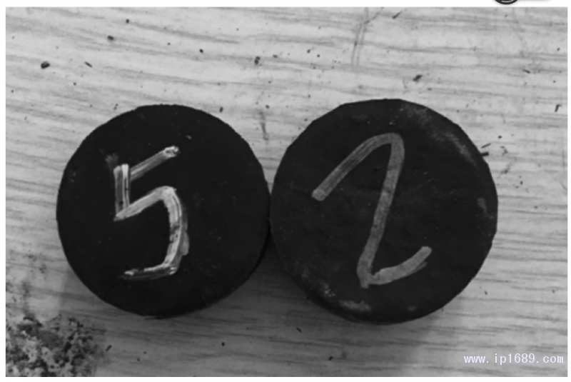 交聯聚合物溶脹后體積變大的微觀解釋為分子鏈的均方末端距變大,其宏觀表現為膠粉的體積變大。超臨界流體輔助螺桿擠出實現廢舊膠粉連續再生的作用機理在于廢舊膠粉溶脹之后,體積變大,有利于雙螺桿擠出機的機械剪切作用施加到膠粉上。本文使用高壓反應釜對硫化后的膠塊進行溶脹實驗,實驗結果表明,在70℃ 的條件下,超臨界二氧化碳作用30 min后,膠塊體積變大15% ,膠塊溶脹前后體積變化情況如Fig. 1所示。