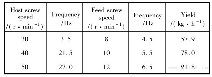 (1)喂料螺桿與主螺桿最優的轉速比為4∶1,在螺桿轉速為40 r / min的條件下產量達到91. 8 kg / h。
