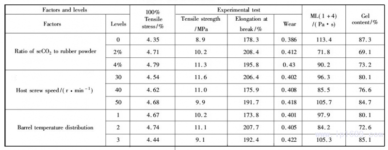 因此,在螺桿轉速為40r / min,超臨界流體與膠粉質量比為2%,機筒溫度在水平3的條件下,可以制備具有理想性能的再生膠。