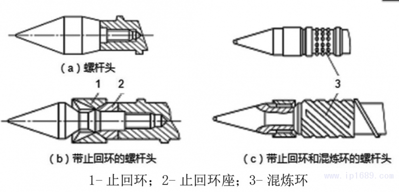 圖 1 注射螺桿頭部結構常用的三種形式