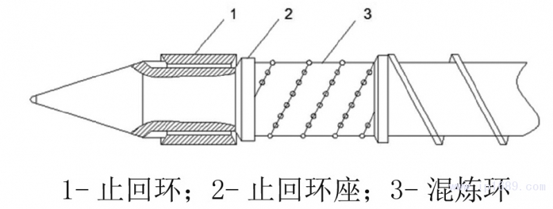 1- 止回環;2- 止回環座;3- 混煉環