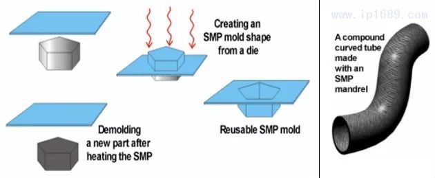 智能聚合物處理的角度來看,SMP芯軸也很優勢。對于目前的制造技術來說,中心直徑大于兩端的物體是一個很難制造的形狀,因為在復合材料固化后無法提取剛性的磁芯軸。
