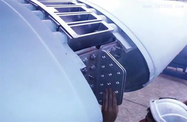 金屬配件被粘在每個葉片段的斯帕爾層壓板上,然后螺栓連接到這兩個部分。