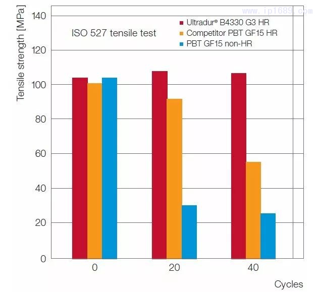 Ultradur B4330 G6 HR被證明具有相當長的耐受時間(底部)。