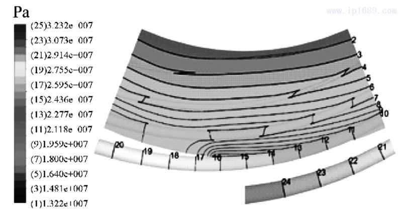 (a)計算域的壓力分布云圖 (b)整個流道的壓力分布云圖