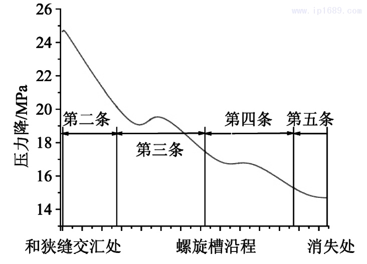 圖 5 螺旋槽出口在對稱平面上的壓力降
