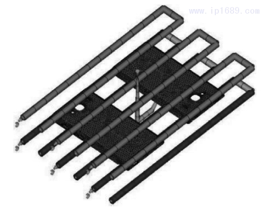 根據運算得到最佳澆口位置,建立澆注系統及冷卻 系 統。 采 用 潛 伏 式 點 澆 口,冷 卻 水 管 直 徑8MM,單 面 冷 卻 管 道 6 條,管道中心之間距離30MM,管道之間使用軟管進行連接,冷卻水溫度為25 ℃,所得薄壁制件有限元模型如圖2所示。根據有限元模型進行成型窗口分析,以確定最佳初步工藝參數,并用作后續步驟的初步輸入參數。經成型窗口 分 析 得 到 最 佳 成 型 工 藝 參 數 為:注 射 壓 力180MPa,模具溫 度72.22 ℃,熔 體 溫 度290 ℃,注射時間0.34s。