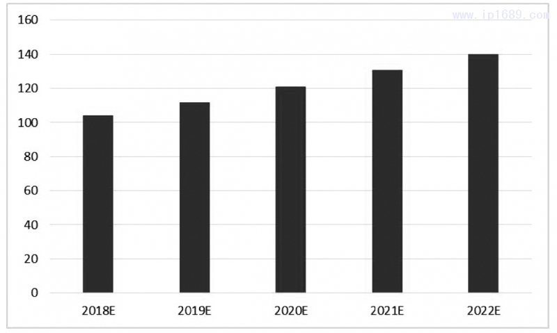 -2022)復合增長率年均約為7.78%,預計2022年將達到6.10萬億元[9]。結合這些數據,可預估出我國汽車零部件行業對于循環包裝的市場規模情況如表6及圖6所示。