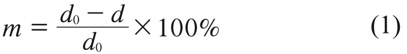 為了研究溫度對高壓成型件厚度的影響,定義 減薄率 (m) 為: