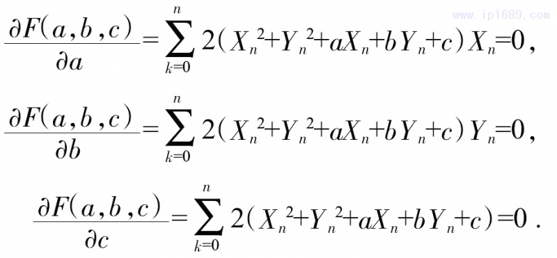 dn2- R2=(X - A)2+(Ya - B)2- R2=X n2+Y 2+aXn +bYn +c . (4)
