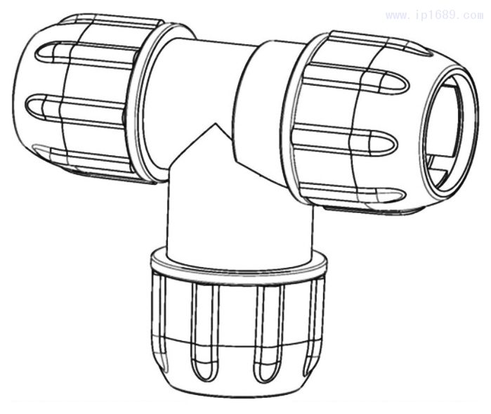一種三通塑料延長件,包括連接件主體,連接件主體上設有3個連接頭,3個連接頭之間相互連通形成中空結構,連接頭上設有若干彈性壓片,若干彈性壓片沿連接頭周向方向平均設置,彈性壓片外表面設有螺紋,彈性壓片上設有鎖緊螺母,在三個連接頭內至少有一處設有起增強摩擦作用的環形套環。通過在連接頭內設置環形套環,限位凸臺與彈性壓片相抵觸,防止環形套環掉入連接頭內部。延晾桿穿過環形套環后,沿鎖緊方向扭動鎖緊螺母,鎖緊螺母與彈性壓片的螺紋實現螺紋連接。通過自鎖力作用彈性壓片向連接頭中心靠攏,由于延長晾桿與彈性壓片之間設置了環形套環,增加了延長晾桿與連接頭的摩擦力,使延長晾桿不會從連接頭上滑落,提高安全性(申請專利號:CN201820469615.2)。