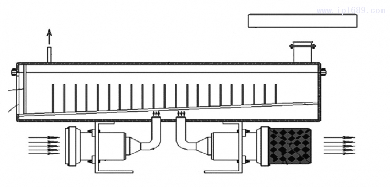 本實用新型公開了一種塑料顆粒熱風干燥裝置,包括一箱體,在箱體的上端安裝有一可拆卸的箱蓋,在箱體的內部位置處傾斜設置有一底板,該底板與箱體之間焊接固定,底板的傾斜角度為3~6°,在底板的板面上均布有插孔,通過插孔插入有插桿,插桿為空心,插桿的上端封閉,下端具有插管部分,插管部分插入至插孔內,插桿位于底板上方的那一部分上均布有噴出熱風用的孔,在箱蓋頂部的靠近右側位置處焊接有一進料管,在箱體的底部左右焊接有兩根支架,在其中一根支架位置處螺絲固定有一電熱風機;本產品可以實現塑料顆粒預干燥(申請專利號:CN201821656083.X)