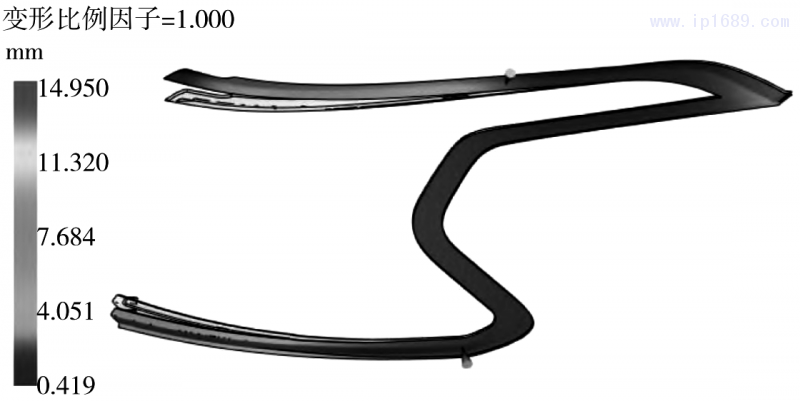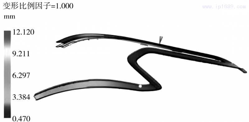 使用此最佳參數組合對黑色部分進行單獨注塑分析,即第一射熔體溫度242.39℃,模具溫度79.99℃,保壓壓力80.00MPa,保壓時間12.00s,如圖4所示,其翹曲變形量為12.120mm,較優化前降低了18.9%。