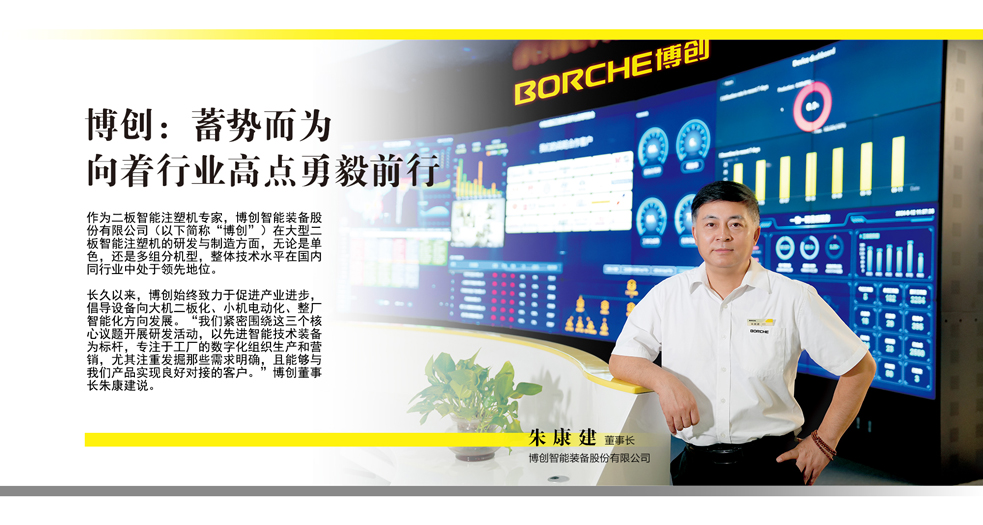 博創智能裝備股份有限公司 董事長-朱康建 作為二板智能注塑機專家,博創智能裝備股份有限公司(以下簡稱博創)在大型二板智能注塑機的研發與制造方面,無論是單色,還是多