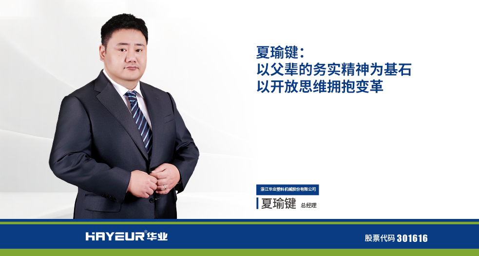 浙江華業塑料機械股份有限公司總經理-夏瑜鍵 2019年,在浙江華業董事長夏增富的辦公室里,他的身旁坐著一位很安靜、穿著工作服的年輕人。首先向你們介紹這幾款高端產品及研發
