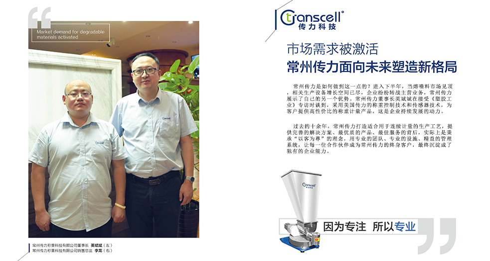 常州傳力是如何做到這一點的?進入下半年,當熔噴料市場見頂,相關生產設備增長空間已盡,企業紛紛轉戰主營業務,常州傳力展示了自己的另一個優勢。常州傳力董事長英斌斌在接受《塑膠工業》專訪時談到,采用美國傳力的稱重控制技術和傳感器技術,為客戶提供高性價比的稱重計量產品,這是企業持續發展的動力。