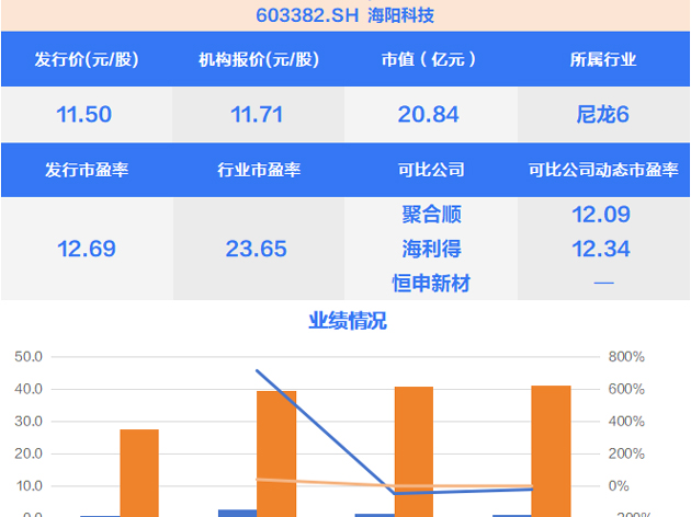 6月12日,新股上市,為滬市主板的海陽科技(603382.SH),該公司系國內從事尼龍6系列產品研發、生產和銷售的主要企業之一,已經形成集切片、絲線以及簾子布完整的尼龍6系列產品體系。