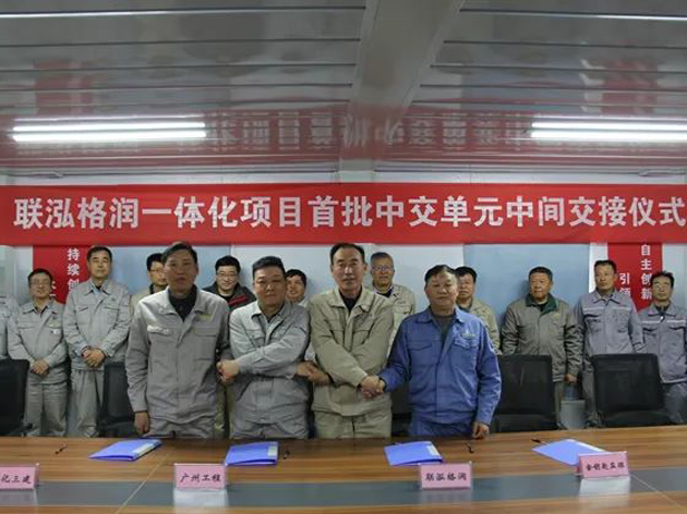 獲悉,3月28日,聯泓格潤(山東)一體化項目舉行首批中交單元中間交接儀式,15#區域變電所、污水處理場變電所、泡沫站等3個單元
