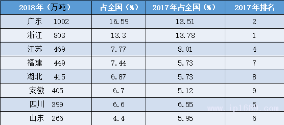 佛山塑料制品總產量占全國5.69%,可排在同期省份第8。