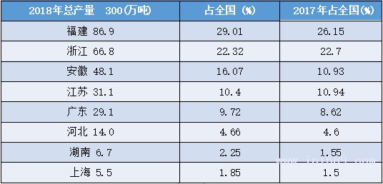 我國人造革合成革主要產區格局變動不大,主要生產省份在東部,上述華東5省市產量占全國總量80%。福建、浙江是最大生產省份。