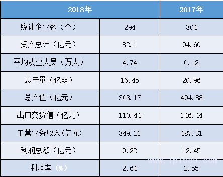 統計數據表明,總產值、資產總計、主營業務收入等數據均有較大下降,利潤率處于低值,用工人數減少。主要產區在揭陽,全年產量14.4億雙,占統計數據86%。