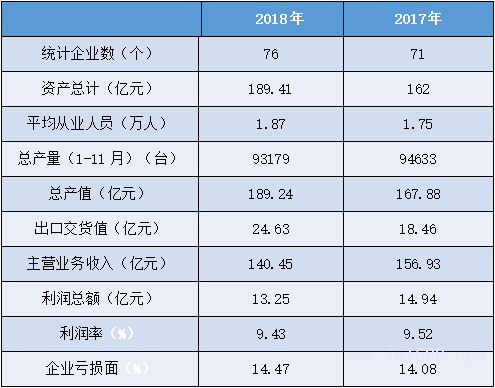 該類產品企業運營數據下滑,企業虧損面增大;企業各類數據占全省總量比重較小,產值、主營業務收入均僅占2.8%分別占2.62%、2.59%,利潤占2.62%,對全省數據影響不大。企業、產品結構在轉型、調整。