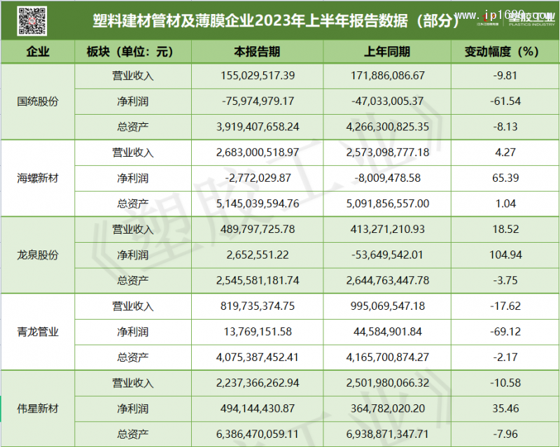 近日,塑料行業各企業2023上半年財報陸續出爐??傮w上看,多家企業收入出現了負增長,據國家統計局數據,1-6月份,全國匯總統計企業塑料制品產量3536.26萬噸,同比下降0.71%。